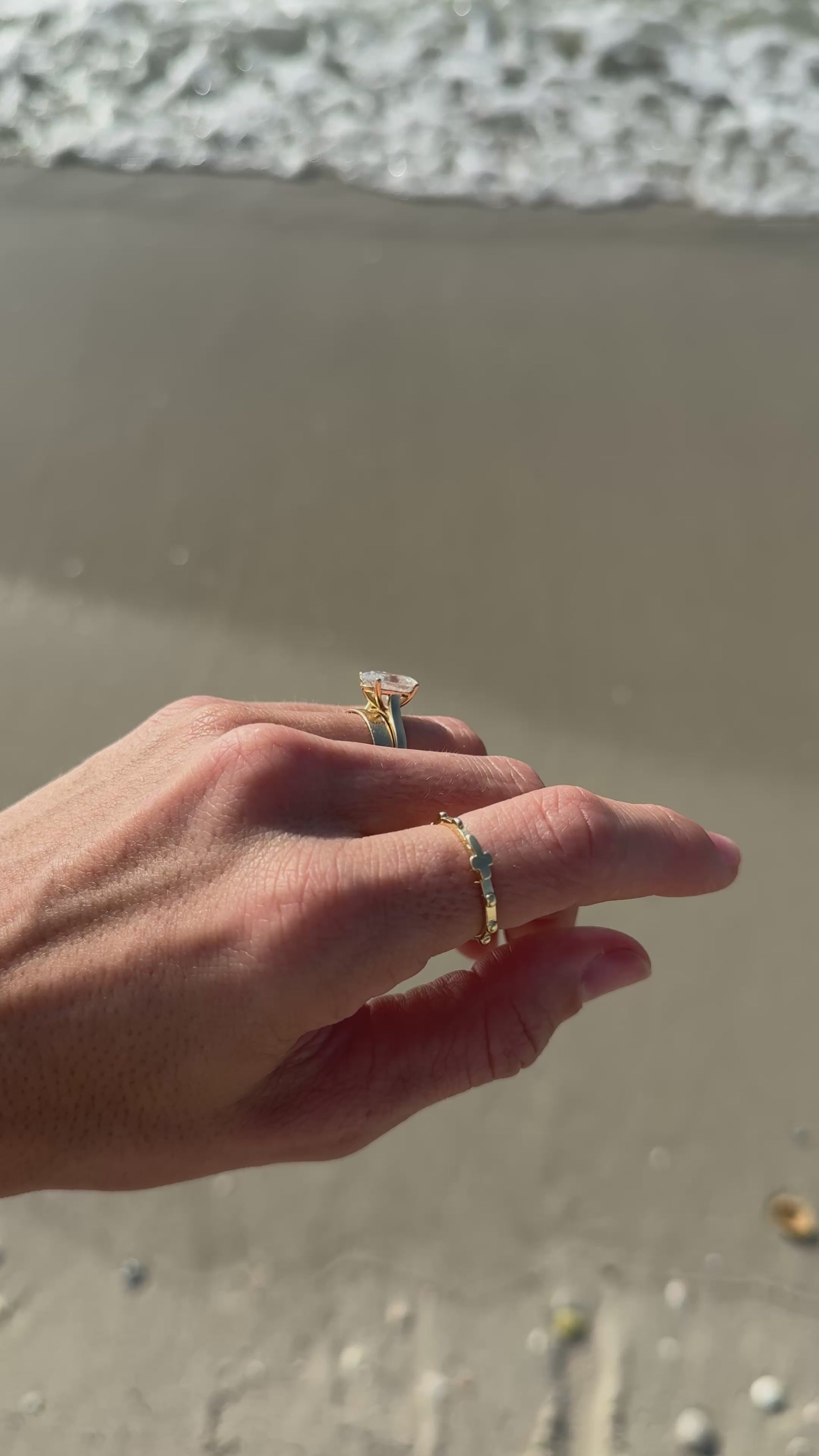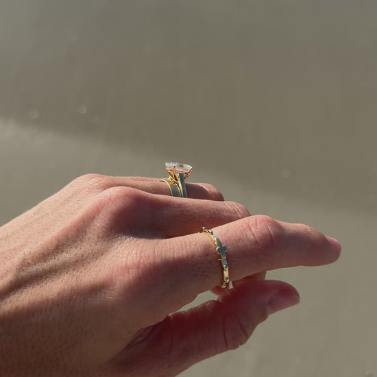 Part of the Ave Collection, The Ave Ring is a wearable single-decade rosary in the form of delicate 14k gold-filled beads placed around a slim, refined band. It is subtle enough for everyday use. The bead sequence gives you an immediate way to pray a decade at any moment, waiting in line, driving, or rocking your baby to sleep. Many saints spoke of sanctifying ordinary moments by filling them with prayer.